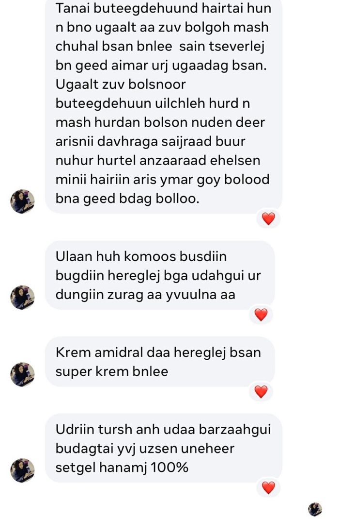 • Юу вэ? → Алтан жимсний тосыг тусгай боловсруулалттайгаар шингээж, арьсанд гэрэлтсэн өнгө өгөх, бараан хэсгийг багасгах.
