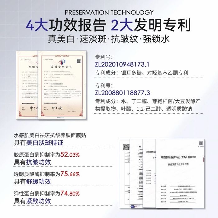 • Патент № ZL202010948173.1: Мөөгний полисахарид болон тусгай нэгдлийн тусламжтай арьсыг цайруулах технологи.